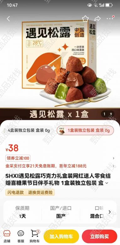 遇见松露,混合口味松露巧克力,保质期到25年。11月20号,几块钱一盒