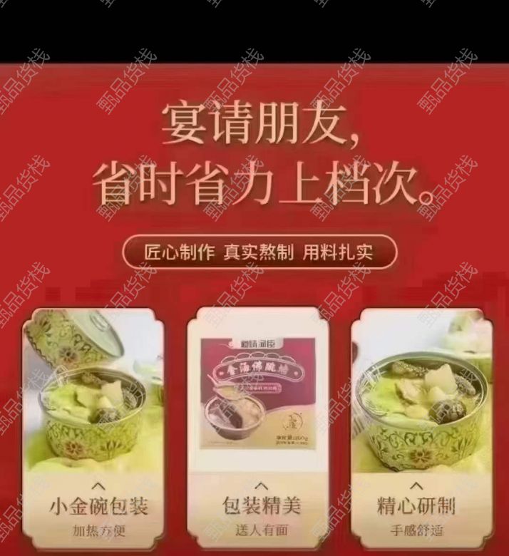 甄品货栈> 济宁嘉征临期食品仓> 小个位数出 金汤佛跳墙8万盒,箱规30盒,。山东提,质量嘎嘎好
