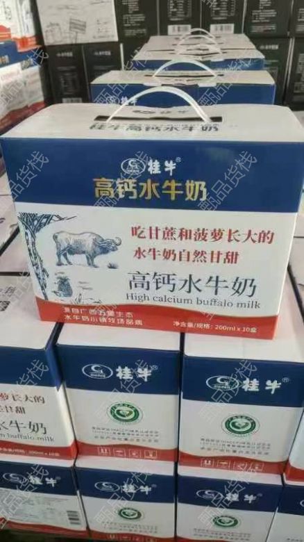 处理桂牛高钙水牛奶,200×10 盒,10 月 23 日期,保质期 6 个月,3000 多箱
