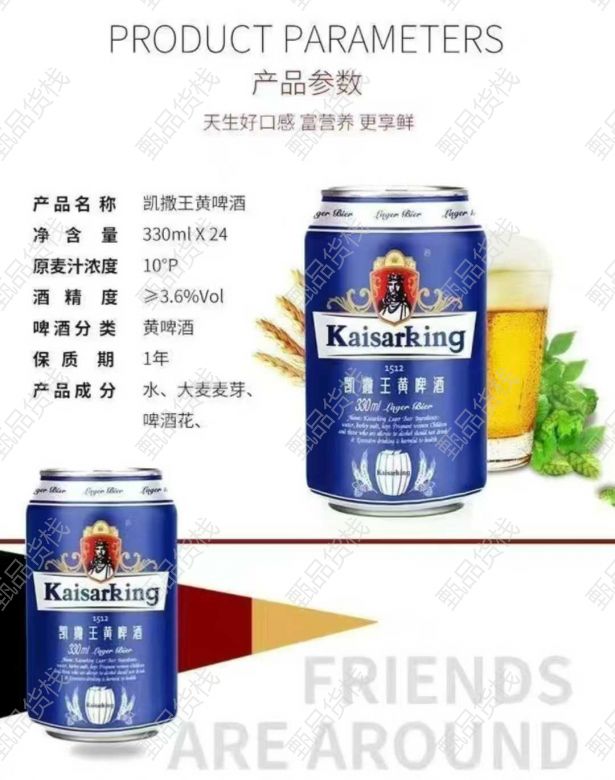甄品货栈> 哈尔滨海龙食品折扣仓> 凯撒王黄啤酒,新日期,价格合适