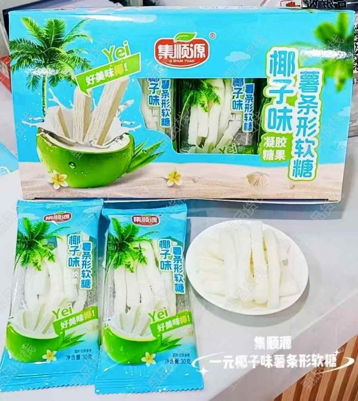 甄品货栈> 山东临沂茂兴折扣仓> 新品到店 椰子味 薯条软糖