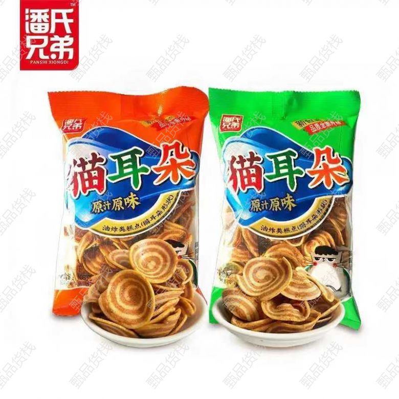 甄品货栈> 天津利赢食品折扣仓> 108g潘氏兄弟蜗牛酥猫,耳朵