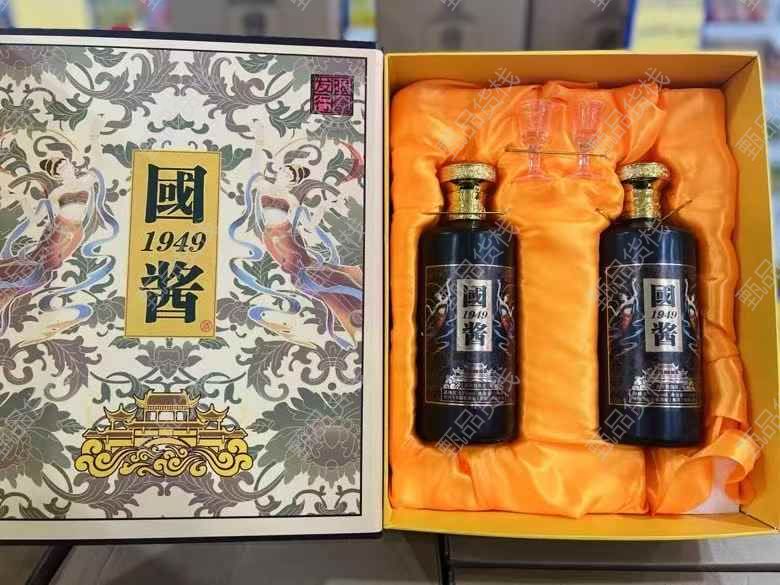 春节送礼首选宝佳荟 品类全·平价更实惠 国酱1949礼盒 53度纯粮优级酱香型白酒, 立体图雕礼盒装,每套500ml×2瓶,配2个漂亮小酒盅和手提袋,送人漂亮又大气! 58一提,走亲访友送人优选!