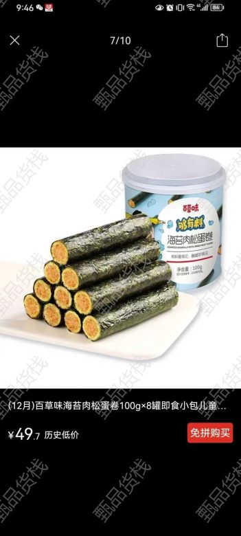 甄品货栈> 大佬田(一手货源)> 处理百草味海苔肉松卷