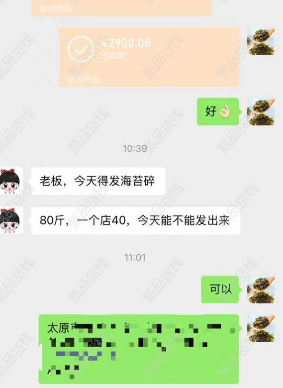 甄品货栈> 连云港瑾恩子商贸有限公司> 感谢支持 需要备货海苔碎dd我