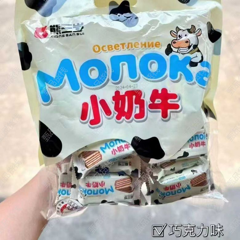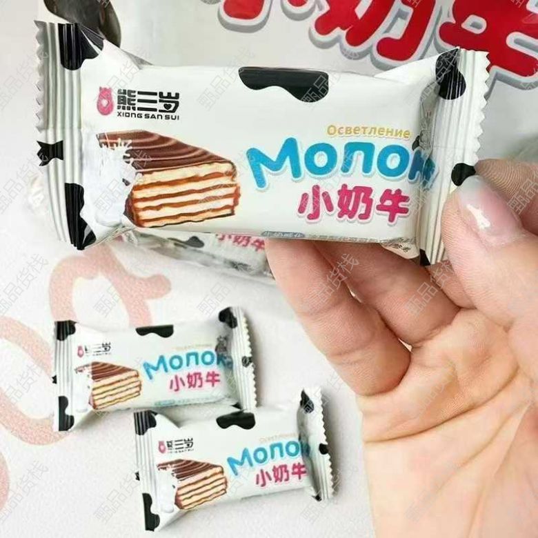 甄品货栈> 哈尔滨海龙食品折扣仓> 小奶牛威化到货,两个口味