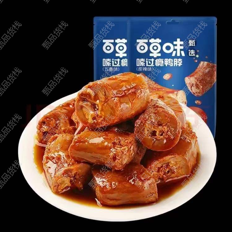 甄品货栈> 天津武清折扣仓> 百草味嗦过瘾鸭脖 箱规30袋 临期到7月