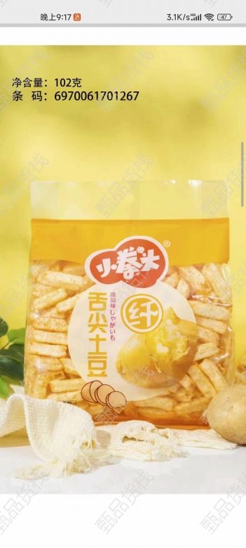 甄品货栈> 临沂蜗牛拼拼折扣仓> 小拳头102薯条,薯片系列