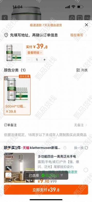 甄品货栈> 临沂玖玖品牌折扣仓> 哈尔滨醇爽500*12罐,到7月底,