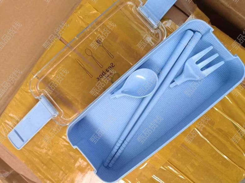甄品货栈> 天津佳点利折扣仓> 26套塑料叉勺三层饭盒套装,2元一套,