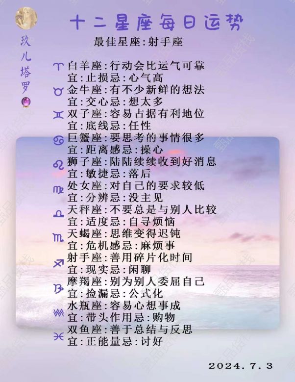 甄品货栈> 南北优品折扣仓> 12星座每日运势(射手座)