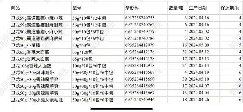 甄品货栈> 聚喜莱快消品折扣仓> 卫龙系列。