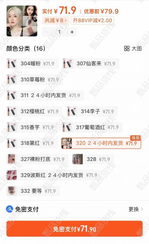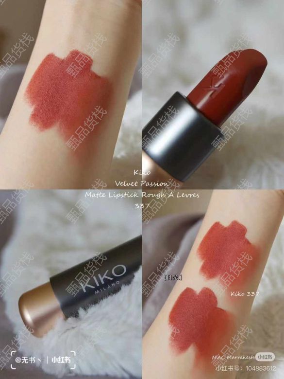 kiko337就是整个系列最屌的色号 显白又不沉闷‘ 现在基本都在卖七八十一只,我们是两只口红还有一个一百多块钱的腮红 一整套带礼盒才五十多块钱… 百起嘎嘎卖5X