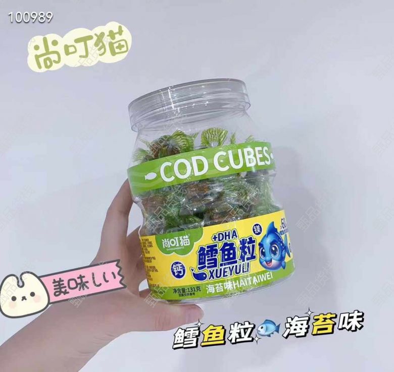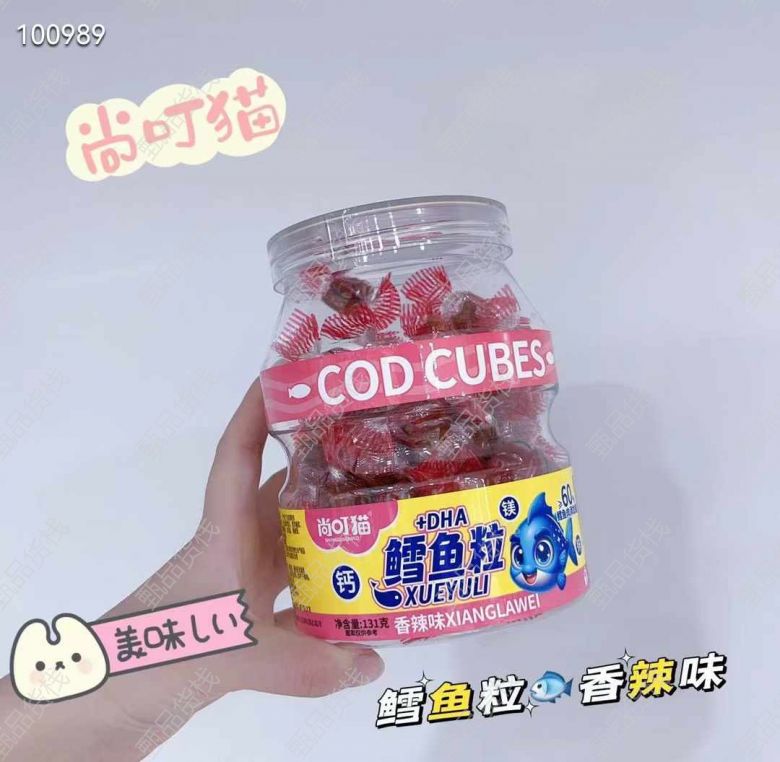 海的味道我知道 【尚叮猫鳕鱼粒]人精选优质鳕鱼 制作而成,口感紧实,一口咬下,浓郁的鳕鱼味在口中散开 给你带来独特的味觉享受,独立小包装,随时随地来上几颗鳕鱼粒,让美味常伴你左右1*24瓶