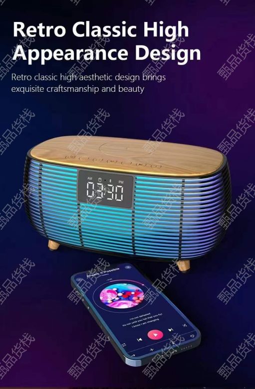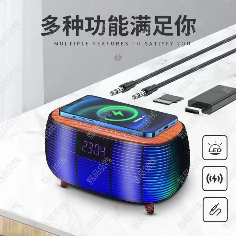 甄品货栈> 三哥精品库存购销> 无线充闹钟蓝牙音箱,700套