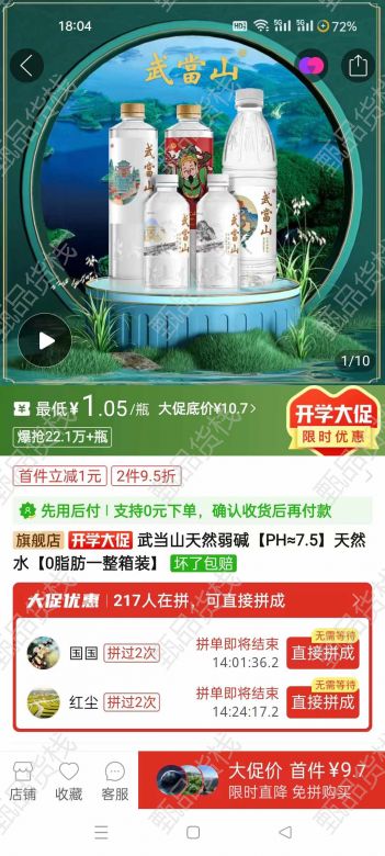 甄品货栈> 1+折扣仓> 武当山弱碱水550*24瓶新货2万箱