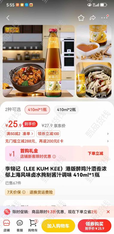 甄品货栈> 天津桐桐食品折扣仓> 李锦记,醉鸡汁,三块多钱一瓶
