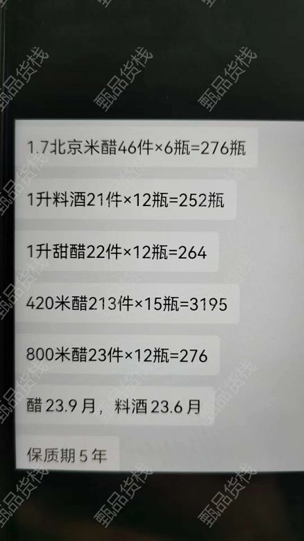 甄品货栈> 河南小朱个人货源> 出^ - ^米醋和料酒 具体明细如下图