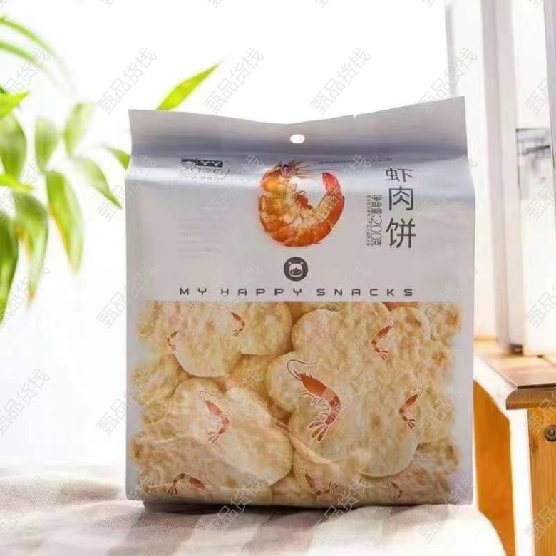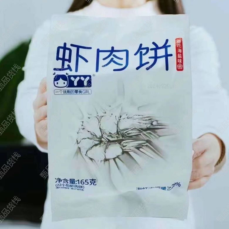 甄品货栈> 临沂蜗牛拼拼折扣仓> 丫丫虾肉饼 一箱16包,一包200克 原味 樱花海盐味165克 ⭕️外观像...