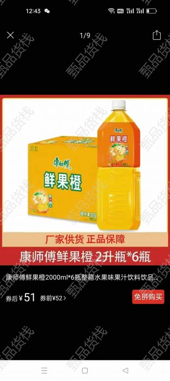 甄品货栈> 1+折扣仓> 康师傅鲜果橙 2L*6瓶,保到一月,350箱