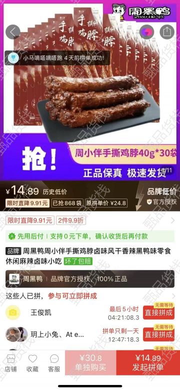 甄品货栈> 沧州路路食品仓> 周黑鸭烤脖 几毛钱一根!太牛了