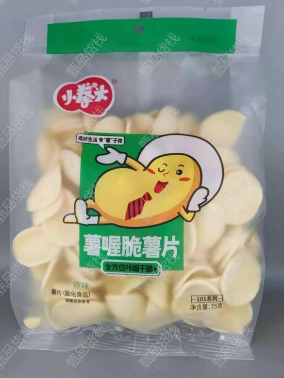 甄品货栈> 临沂蜗牛拼拼折扣仓> 小拳头75克薯片,虾条,一件50包