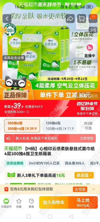甄品货栈> 清河县沐晨折扣仓> 7月份,3000件心相印抽纸
