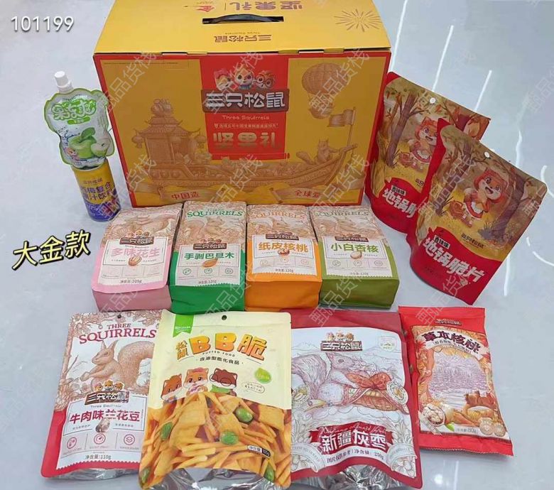 到货到货 中秋礼盒 ——三只松鼠️坚果礼 中国坚果礼盒 销量遥遥领先者 ——大金坚果礼 ——净含量:(12包料)✅ ✅手剥巴旦木120克✖️1 ✅纸皮核桃120克✖️1 ✅松鼠BB脆105g✖️1 ✅小白杏核120克✖️1 ✅多味花生205克✖️1 ✅地锅脆片85克✖️2 ✅草本核桃80克 ✖️1 ✅新疆灰枣250克✖️1 ✅牛肉味兰花豆110克✖️1 ✅西梅复合果汁饮料240ml✖️1 ✅果冻爽150ml✖️1