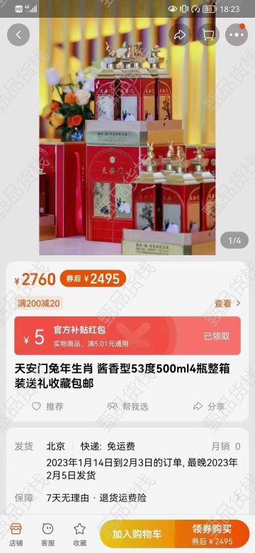 甄品货栈> 上海阿拉爱酒进口酒水仓> 天安门兔年纪念酒现货