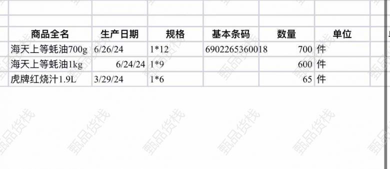 甄品货栈> 张翠快消品供应链> 海天系列 6月出厂 有明细