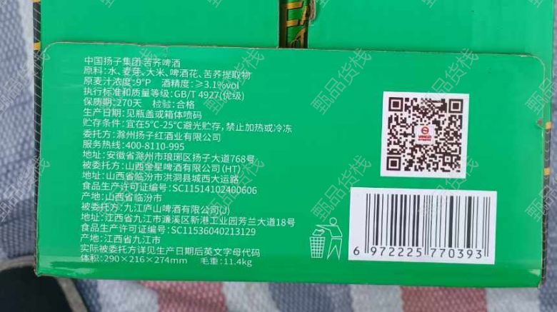 甄品货栈> 哈尔滨特美惠食品折扣仓> 扬子苦荞啤酒继续到货一车