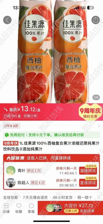 甄品货栈> 济宁嘉征临期食品仓> 处理 佳果源西柚汁和番茄汁1L