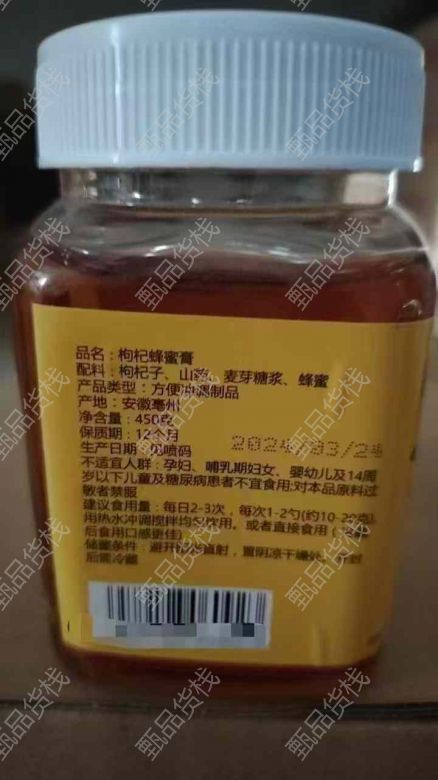 甄品货栈> 白云易购折扣仓> 枸杞蜂蜜膏 到25年3月份,1万瓶