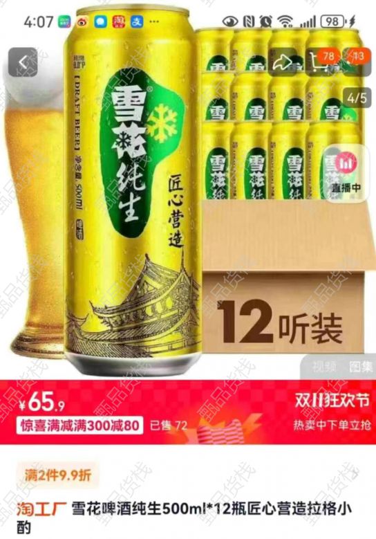 甄品货栈> 上海诚信贸易> 出雪花纯生450件,生产日期是2345月