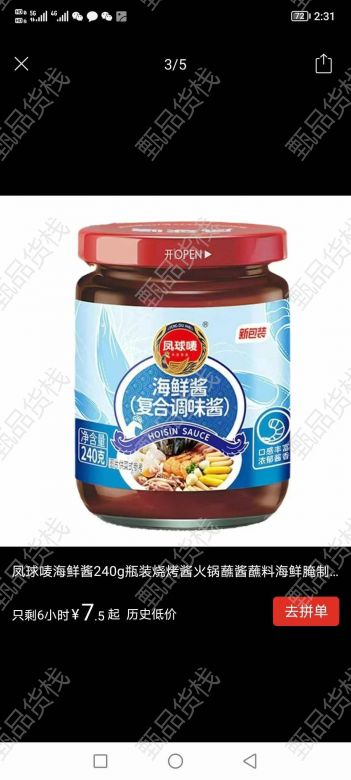 甄品货栈> 天津佳点利折扣仓> 海鲜酱,60瓶,2元一瓶