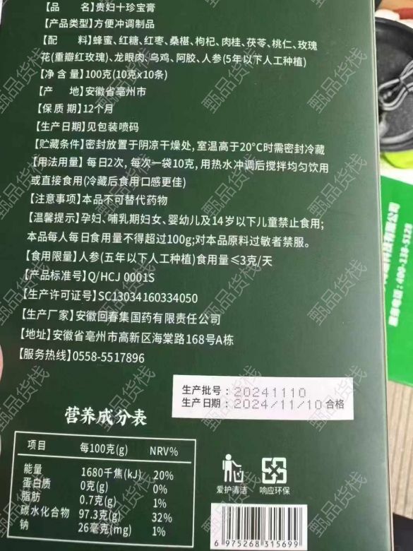 甄品货栈> 高雅供货仓> 阿胶乌鸡白凤膏100克 8000盒 新日期