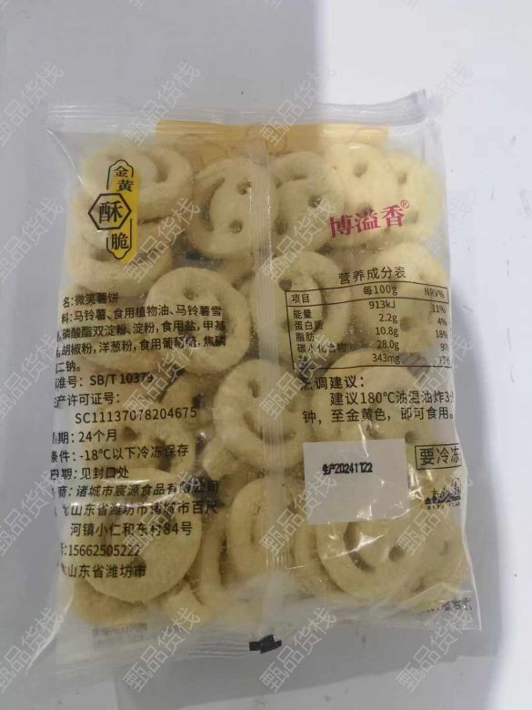 甄品货栈> 河北河间健桐折扣冷库> 笑脸薯饼 500克20包