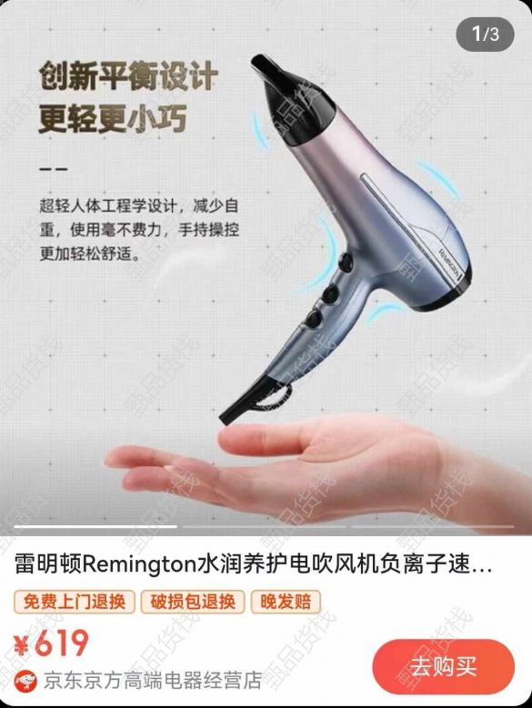 甄品货栈> 深圳飞武库存尾货> 雷明顿品牌水润养护电吹风机 负离子