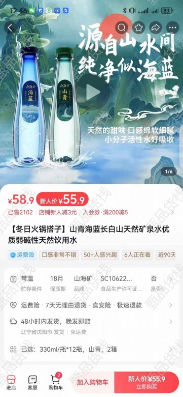 甄品货栈> 常州进口食品供应链> 山海矿矿泉水