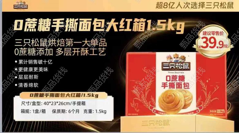 甄品货栈> 临沂尚翌食品临期折扣仓> 三只松鼠烘焙礼盒0蔗糖手撕面包
