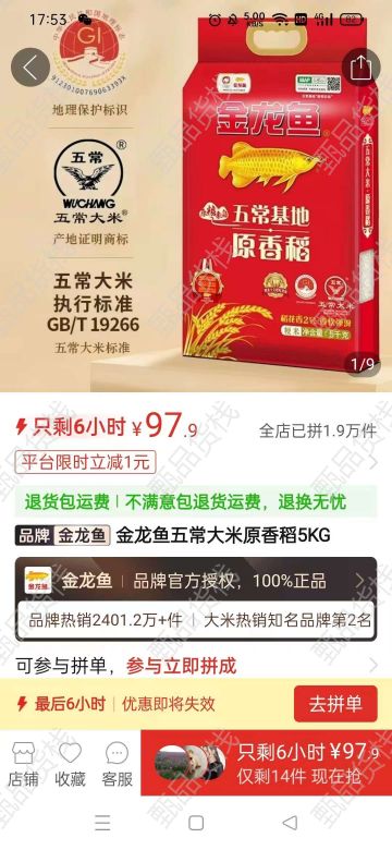 甄品货栈> 慢圆商贸> 出89月金龙鱼五常稻花香5KG一挂