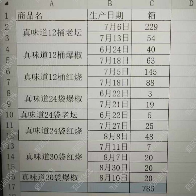 甄品货栈> 金晟商贸> 康师傅真味道,六七八月份都有,700多箱,南通